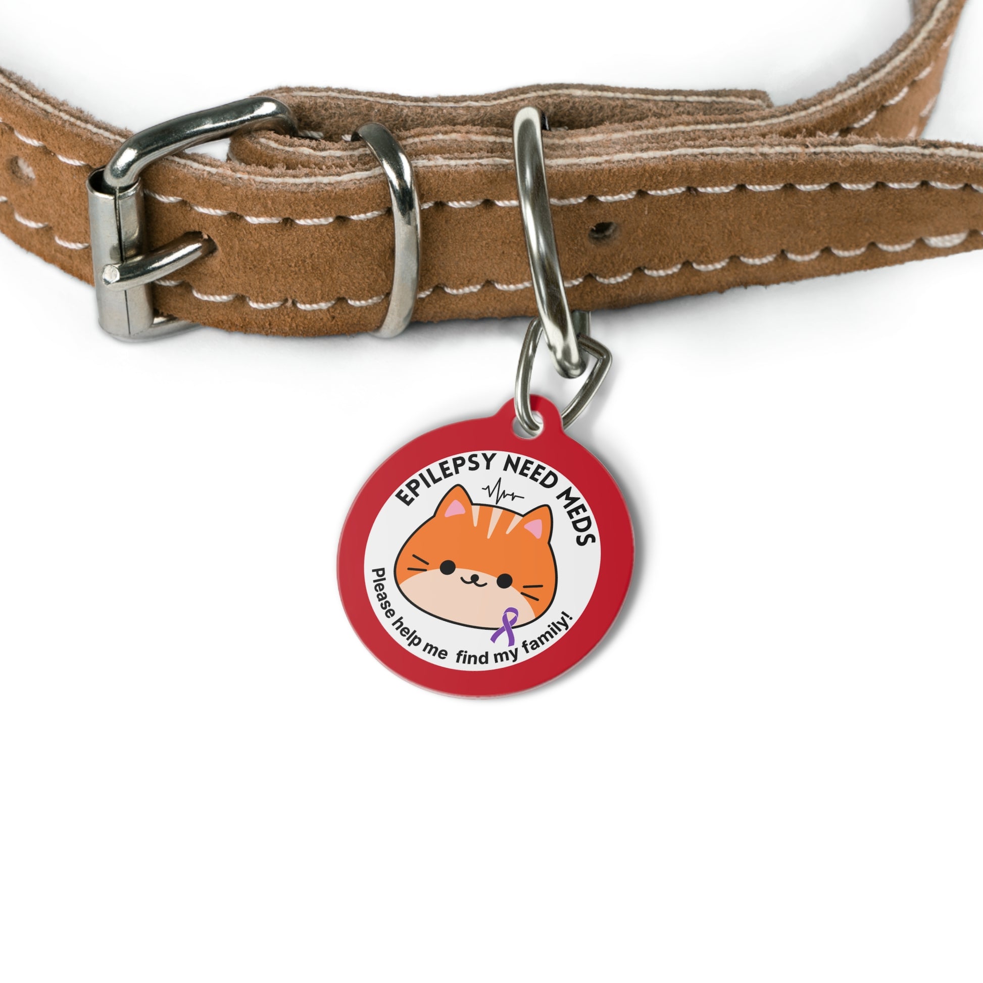 A medical pet tag with epilepsy design for cats, perfect for pet owners looking to ensure their furry friend's safety and well-being. This pet tag is relevant for cat owners who have pets with epilepsy and want to make sure they are properly identified in case of an emergency. Ideal for pet owners who want a practical and stylish accessory for their feline companions. Relevant for pet owners who want to celebrate National Pet Awareness Month.