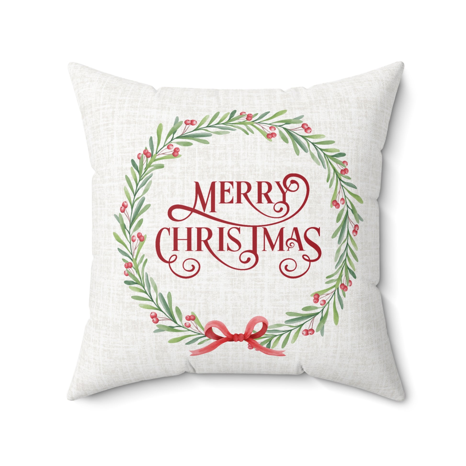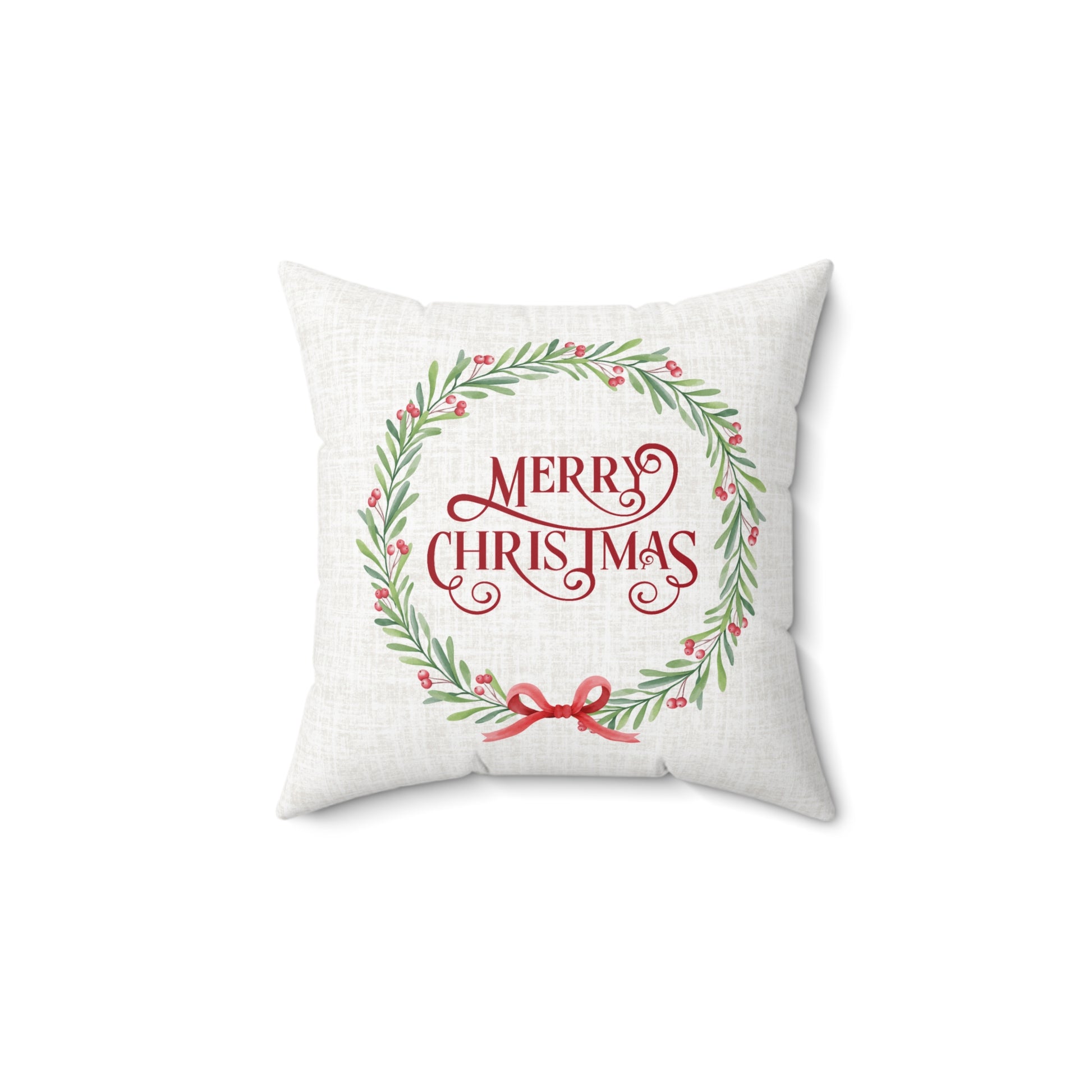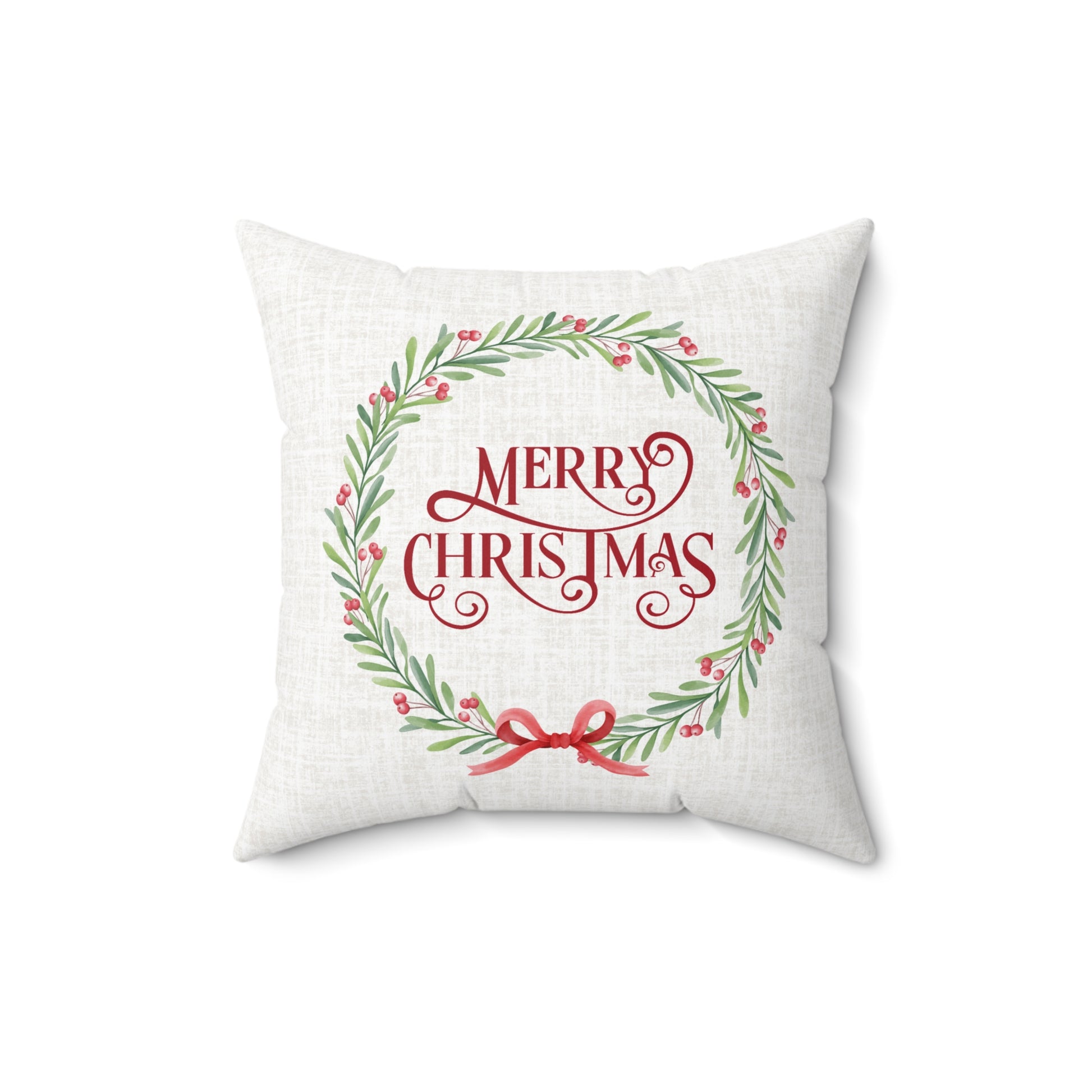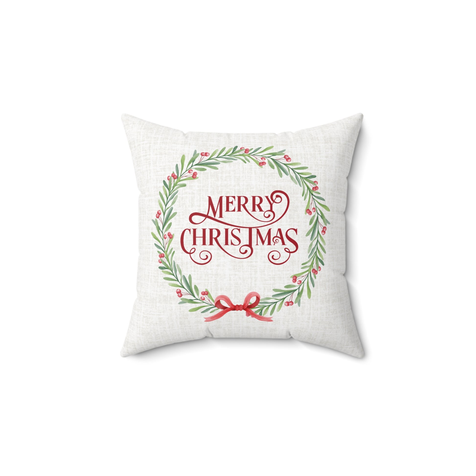 This Merry Christmas Garland Decorative Pillow will bring festive cheer to your home during the holiday season. Made from high-quality spun polyester, this square pillow features a double-sided print and a concealed zipper. The beige plastic zipper with a metal head adds a touch of elegance to the design. Perfect for decorating your living room or bedroom during Christmas.