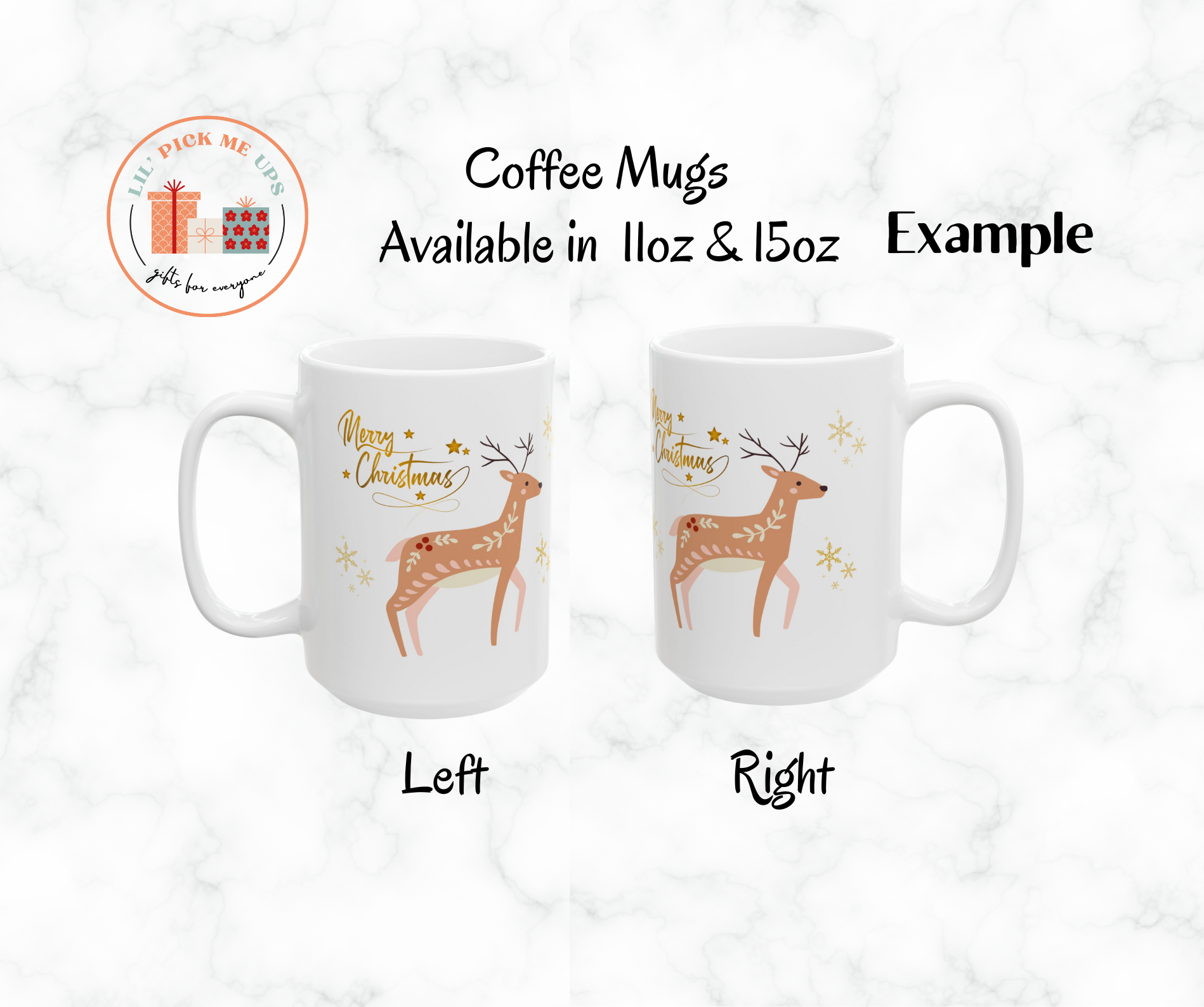 Christmas Reindeer Ceramic Mug — "Merry Christmas" Holiday Coffee Cup (11oz/15oz)