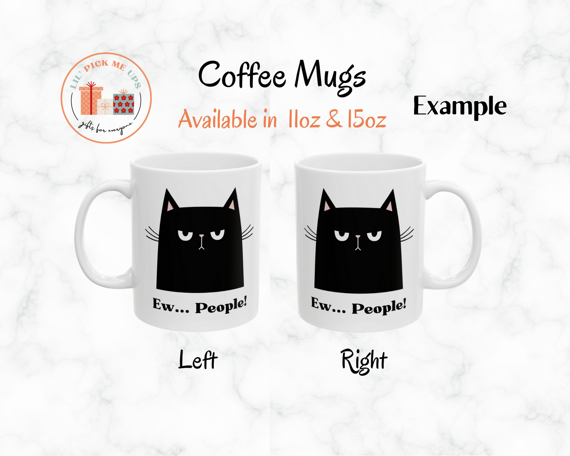 Ew, People! Black Cat Ceramic Mug — Funny Sarcastic Coffee Cup (11oz, 15oz)
