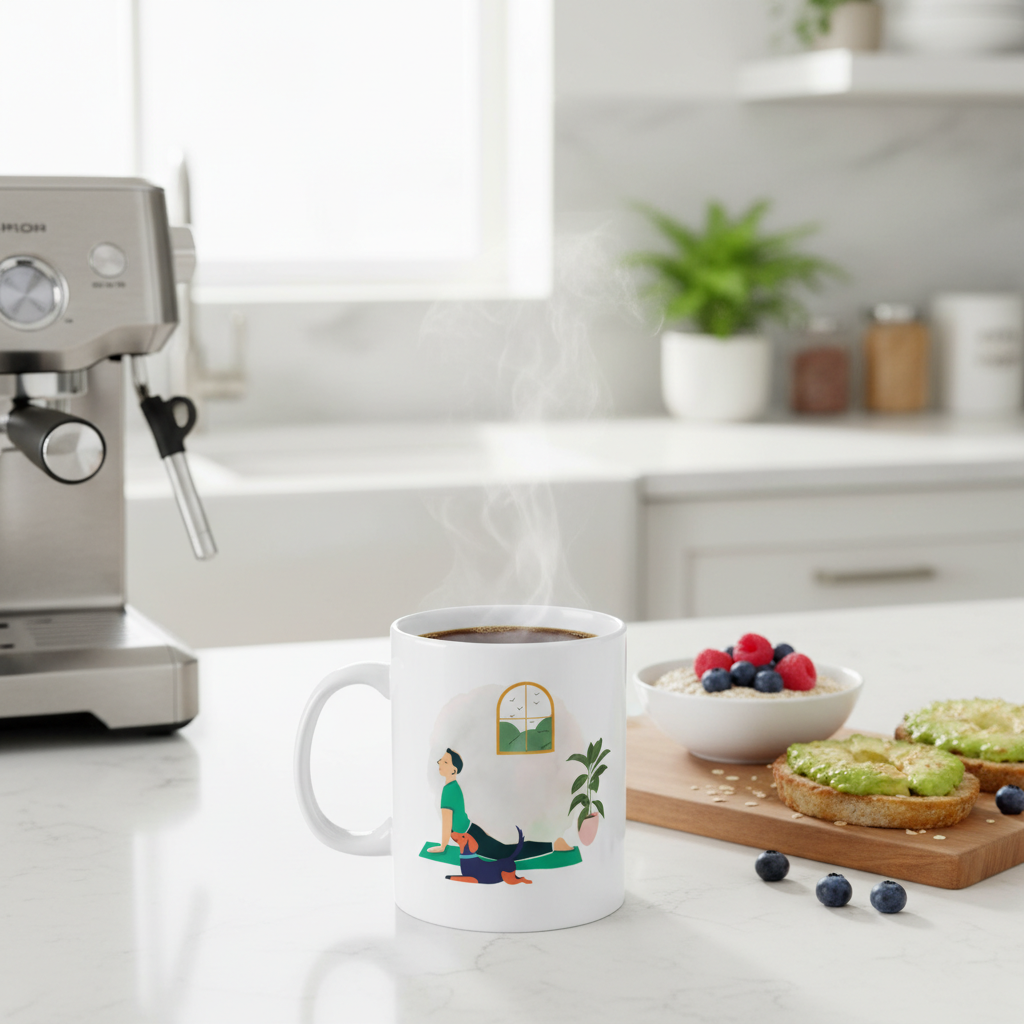 This cozy illustrated mug features a peaceful yoga moment shared between a person and their dog—because mindfulness is better with a furry friend. With soft colors, a calming indoor scene, and feel-good vibes, it’s perfect for morning coffee, post-workout tea, or a mindful break during the day. A lovely gift for yoga lovers, dog parents, or anyone who enjoys slow, cozy moments. It feels comforting in the hand thanks to a classic C-handle and a smooth shiny finish. Dishwasher- and microwave-safe, lead- and BPA-free, this mug is built to be used every morning for coffee, tea, or a cozy hot cocoa while you stretch, breathe, and ground your day.